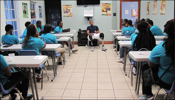 But despite his accolades, this North Carolina native remains humble at heart and took his time to travel here to Deerfield Beach on Friday to talk to kids at the local Teen Center, after being invited by John DiPrato.